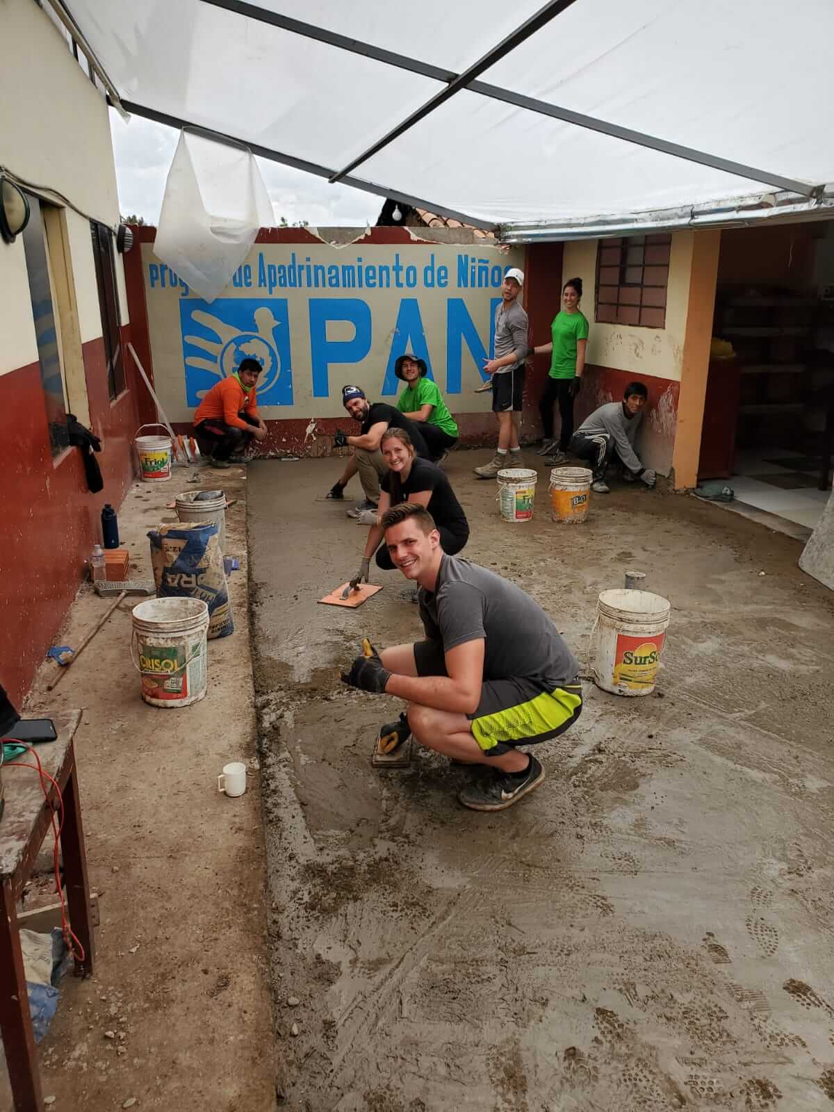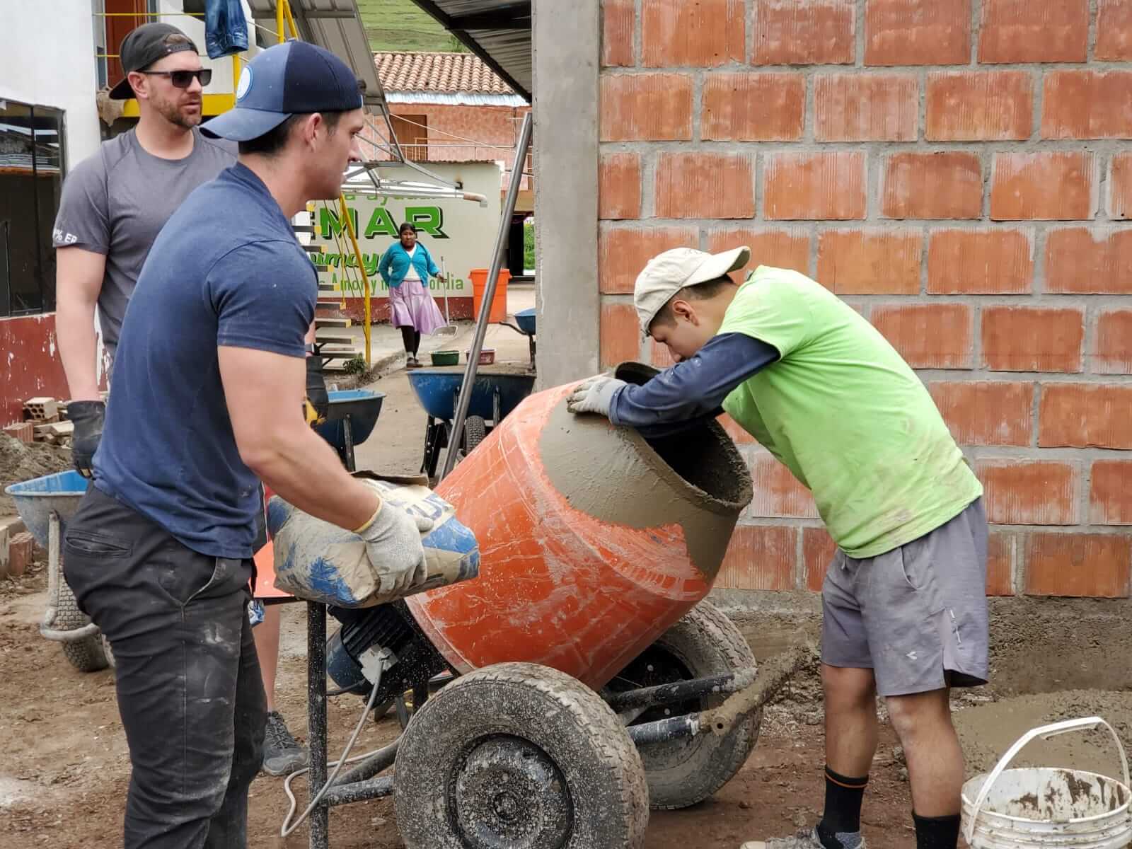 We had 2 mixers going from day 1 and also 6 wheelbarrows to haul all the cement. We had 3 crews split up and working on the different projects during the work days. At one point the decision was made that to be more productive we needed another cement mixer. One participant and his wife kindly purchased a cement mixer to help the project move along faster. Multiple bags of cement were used, buckets and buckets of rocks and dirt were mixed in order to lay all the cement that was required to finish the project. We were blessed each day with a clear blue sky and great weather.